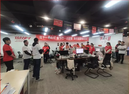 每年雙十一,奮戰在-線的海倫人都在爭分奪秒創業績,集團高層們也在時刻關注戰果。今年雙十一前夕,陳海倫董事長更是蒞臨海倫網絡部慰問全體銷售人員。雙十一當天,陳斌卓副總經理也親臨網絡部,與全體- 線員工一~起熬夜倒數,見證了海倫雙十一銷售額被刷新