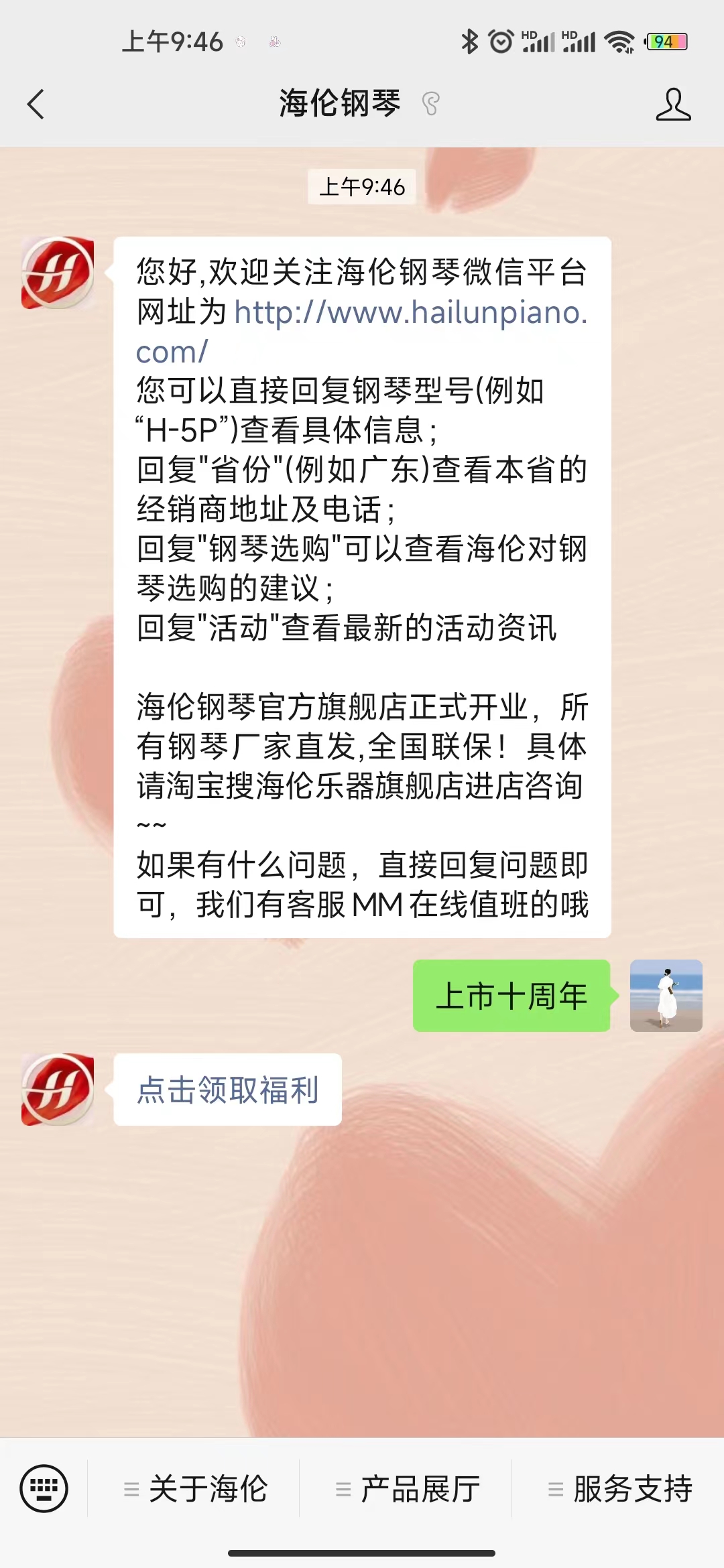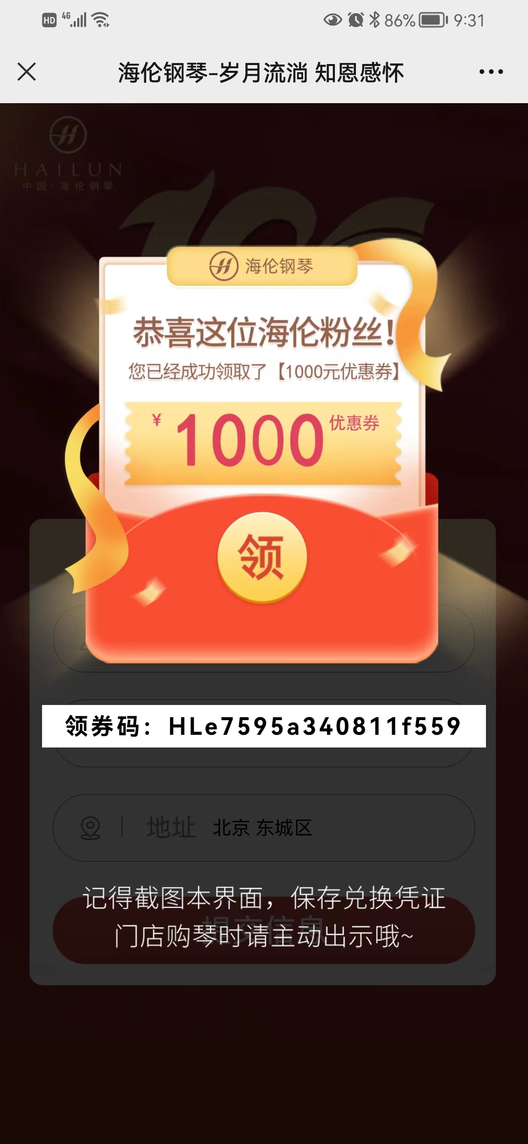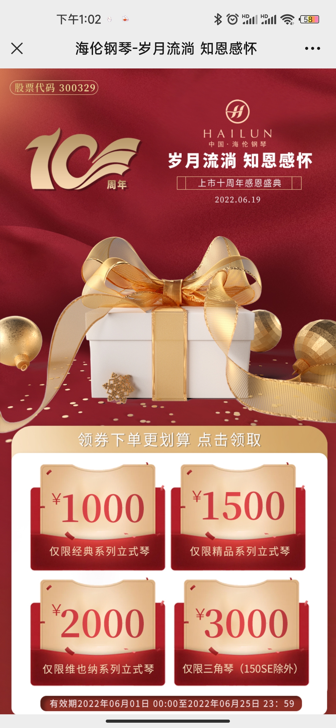 關注“海倫鋼琴”官方微信公眾號,回復“上市十周年”,點擊領取福利進入領券頁面;