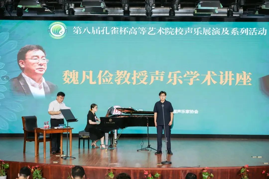 除了展演,本次活動(dòng)設(shè)置了孔雀杯學(xué)術(shù)講堂系列大師課、學(xué)術(shù)講座、觀摩展演、學(xué)術(shù)交流、聲樂(lè)論文點(diǎn)評(píng)交流等環(huán)節(jié),顧平、魏松、魏凡儉、張美林、萬(wàn)山紅、孟玲、劉輝等教授先后開(kāi)展了精彩的大師課和講座。