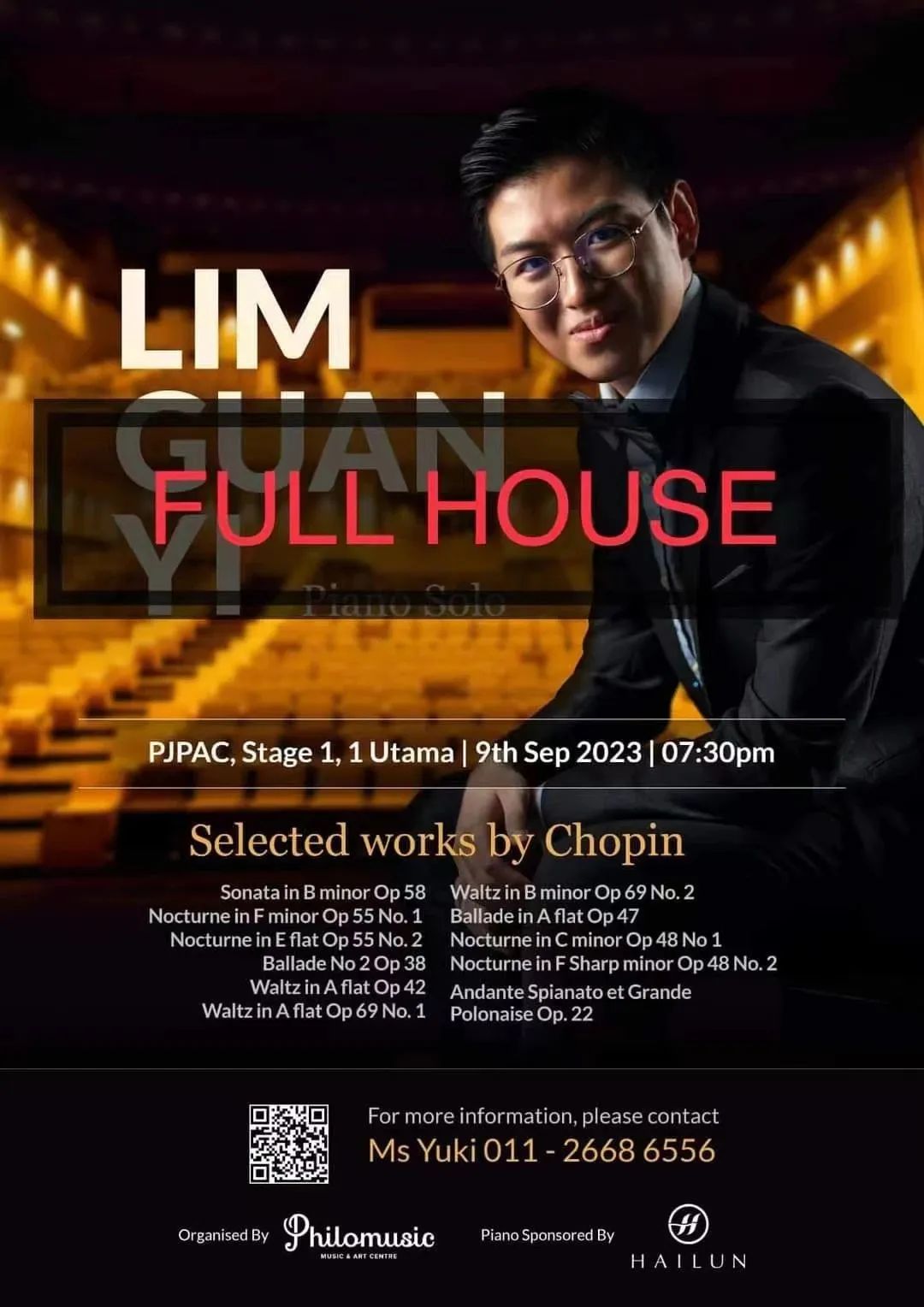 隨著《Polonaise Op.22》最后的余音落下,演出也進入了尾聲。Lim Guan Yi 先生緩緩從琴旁站起,面對著觀眾微笑鞠躬致謝,臺下的觀眾紛紛起身并以雷鳴般的掌聲歡送著這場韻味無窮的藝術。